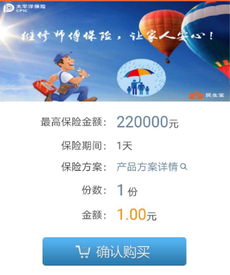 维修工人意外险上线